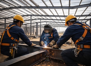 فريقنا يركب الهياكل الحديدية بأمان وسرعة لضمان استقرار المباني.